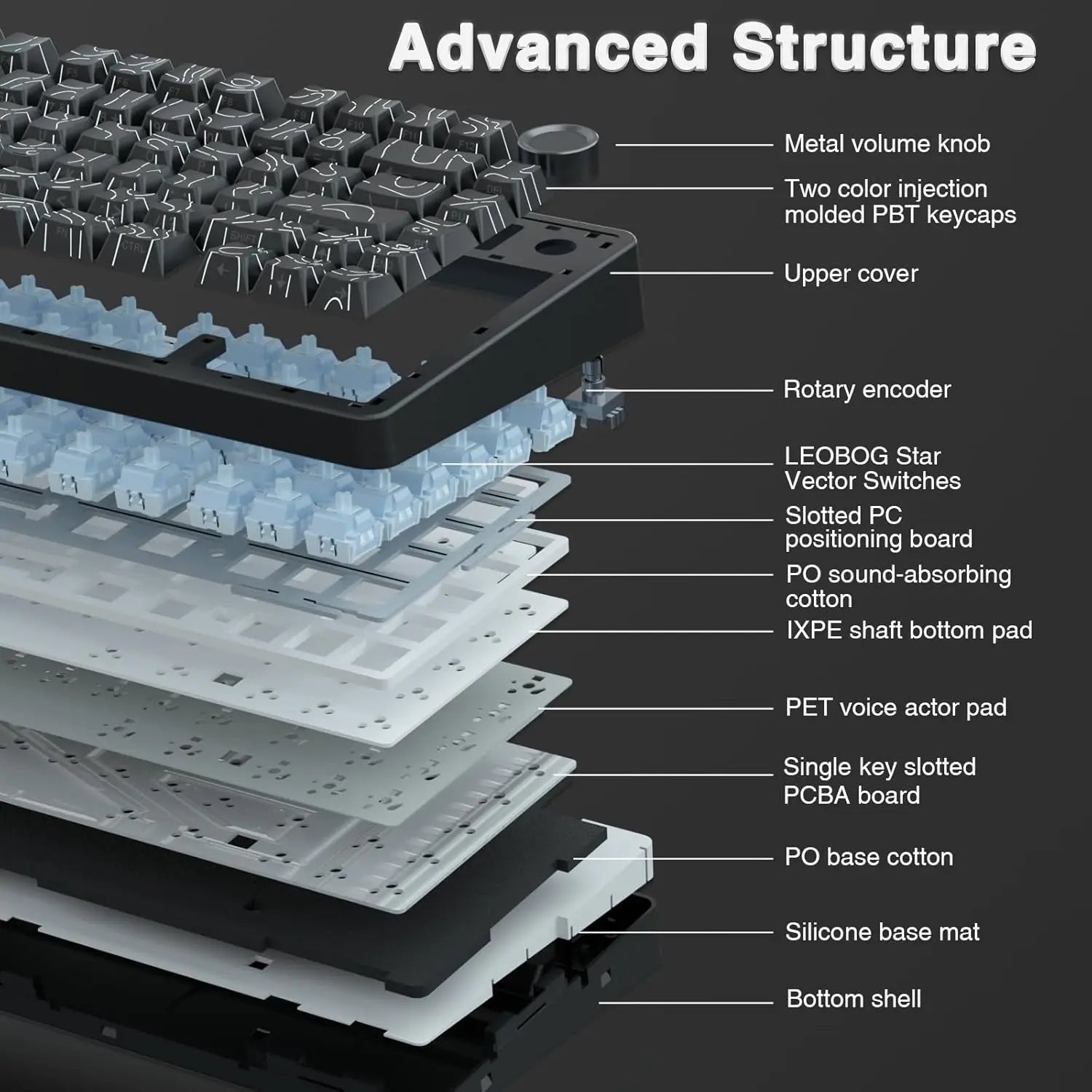 AULA F75 Side-Engraved Bluetooth Wireless Keyboard RGB Mechanical Keyboard 75% Layout Gaming Keyboard